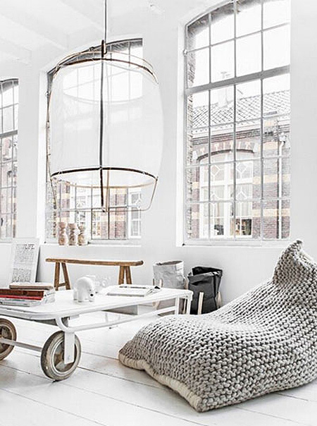 小编的话:纯白色的挑高空间内,大大的窗户给予这间客厅充足的采光,整间客厅显得明亮而宽敞,在白色系的衬托下这个空间显现出一种悠闲自然的居家感受。
