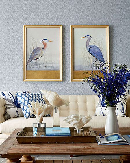小编的话:这间客厅不管是从茶几到沙发或是到背景墙,以浅蓝色的墙纸来铺贴这一墙面,挂放上两幅动物主题的装饰画来达到整个空间的装饰效果,木质茶几摆放于这一空间中让这间客厅中充满自然氛围。