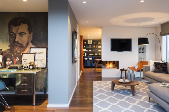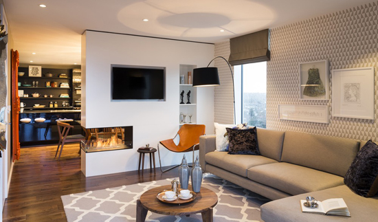 装修TIPS:深色的木质家居装饰成为了这间公寓主要的特点,嵌入式火炉装饰搭配在整个房间中有些许复古的感觉。茶几上的装饰品和平台上的盆栽都为房间增添了不少个性。仔细观察火炉,火的感觉非常真实,让房间艺术感十足。