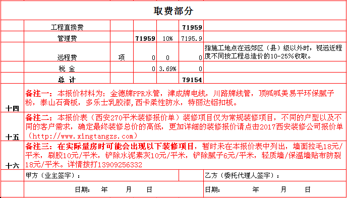| 2017年西安270平米装修报价表/价格预算清单 |