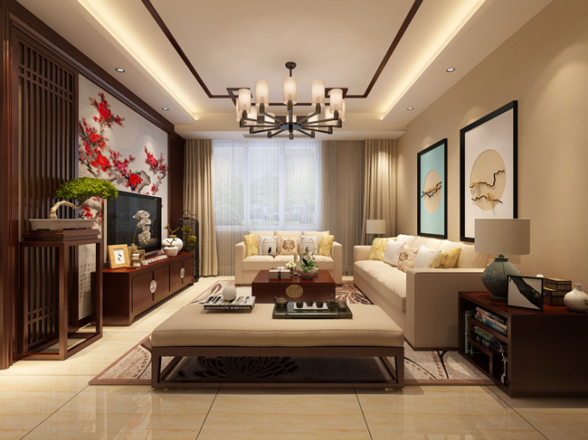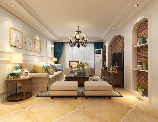 户型采光一般,所以整个色系均以浅色系为主,暗棕土黄点坠整个地面仿古砖菱形铺贴。电视墙圆供型造型贴文化砖和呼应,门厅端景墙线条勾勒和顶面相得益...【查看详细】