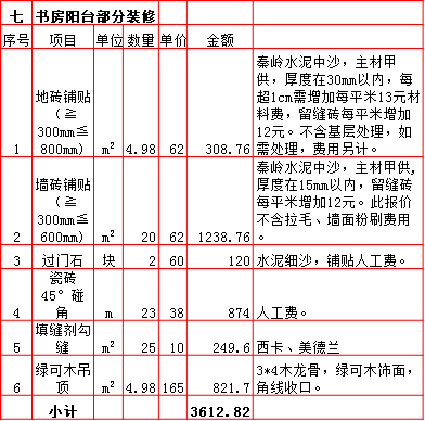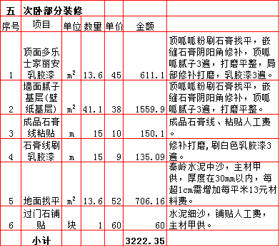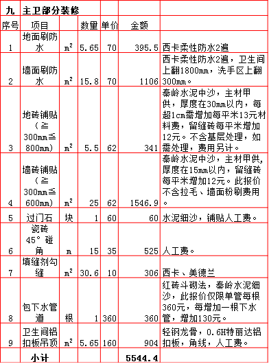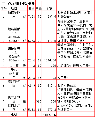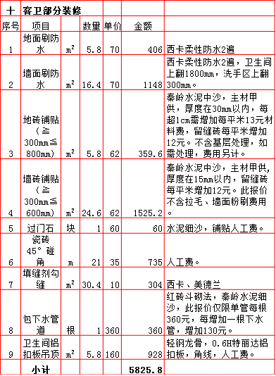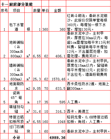 2019年西安180平米半包装修预算费用报价表