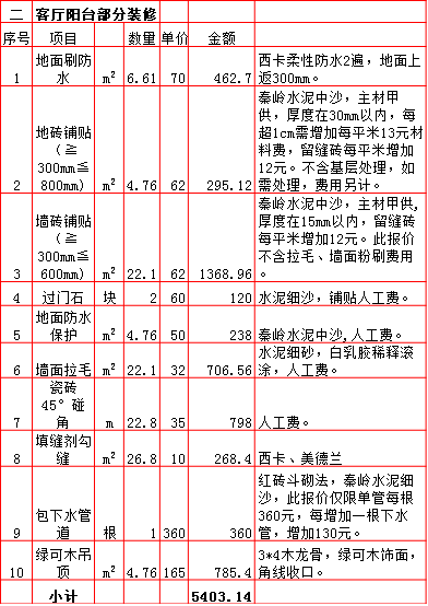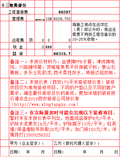 | 2019年西安170平米半包装修预算费用报价表 |